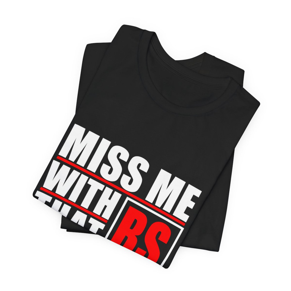 Introducing the "Miss Me With That BS" T-shirt – the ultimate wardrobe staple for anyone who’s done with the drama! This tee delivers the perfect blend of attitude and style, making it clear that you don’t have time for games or nonsense. Whether you’re out running errands, hanging with friends, or just handling business, this shirt speaks for itself. Crafted from comfortable, high-quality fabric, it’s as effortless to wear as it is to make a statement. Slip it on, own your vibe, and let the world know you’re not here for the BS!