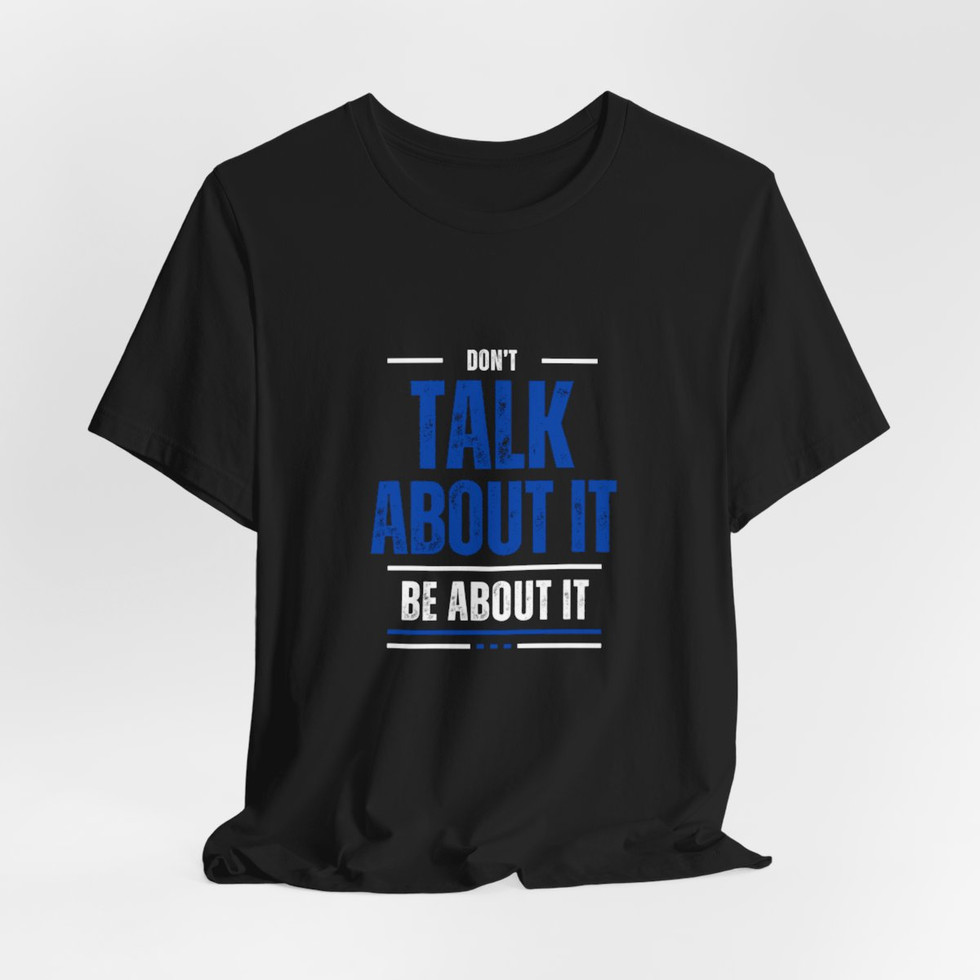 Introducing the "Don't Talk About It, Be About It" T-shirt – a powerful statement for those who believe in action over words. This shirt embodies the ethos of getting things done and living up to your promises. Made from soft, durable fabric, it’s perfect for anyone ready to roll up their sleeves and put in the work. Whether you're out chasing goals or tackling daily challenges, this tee serves as a reminder that talk is cheap; it’s your actions that define you. Wear it with pride, inspire others, and let the world know you’re all about making things happen!